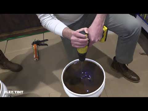 6) Mix thoroughly using a drill-driven paint mixer for 5 to 7 minutes. Tint should be evenly distributed and no solids left in the bottom of the pail. There should be no streaks or milkiness.